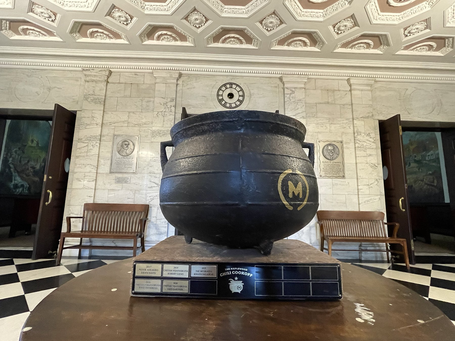 Today, the Maplewood Chili Cookoff’s 100+ year-old iron cauldron trophy lives on permanent display in the lobby of Maplewood town hall, safeguarded by each new mayor for generations to come.